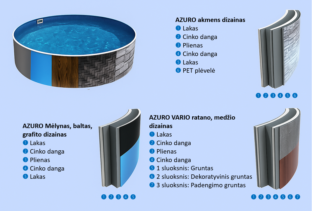 AZURO RATTAN antžeminių baseinų techninės specifikacijos