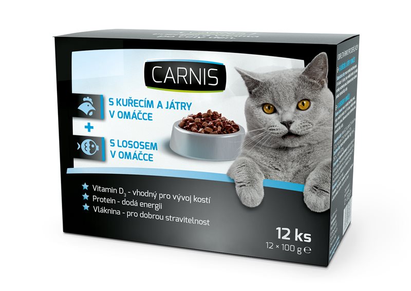 Pockets CARNIS, sultingi vištienos arba lašišos gabaliukai su skaniu aukštos maistinės vertės padažu yra labai skanūs ir mėgstami kačių. Juos lengva patiekti ir šerti vieną kartą (suaugusios katės dienos porcijos yra 3–4 kišenės). Šiuose mažuose mėsos gabalėliuose, užpildytuose tirštu padažu, yra viskas, ko reikia jūsų katei, ir jie suteikia gyvybingumo ir energijos visai dienai.