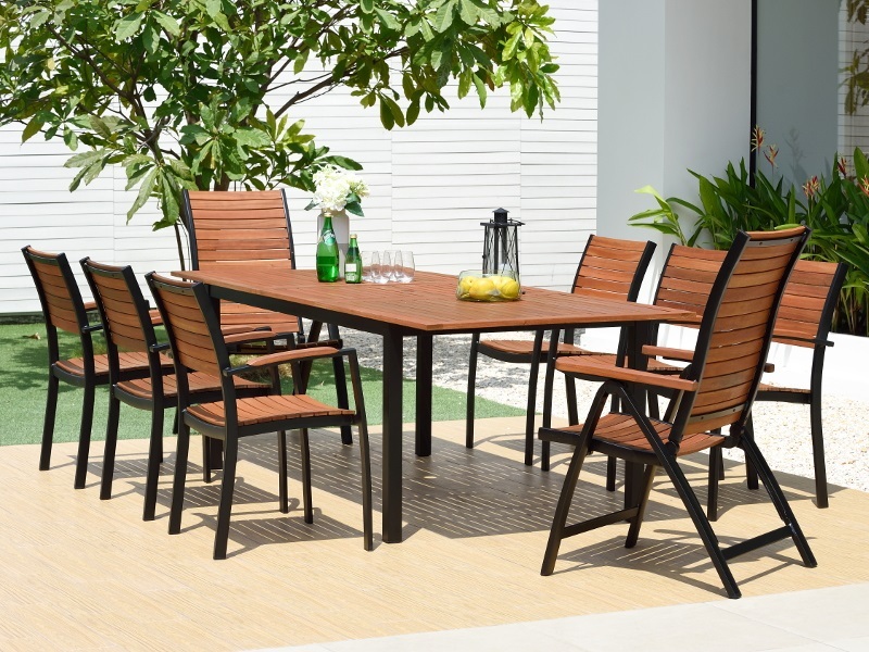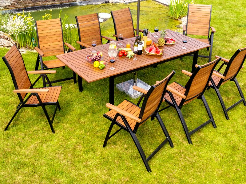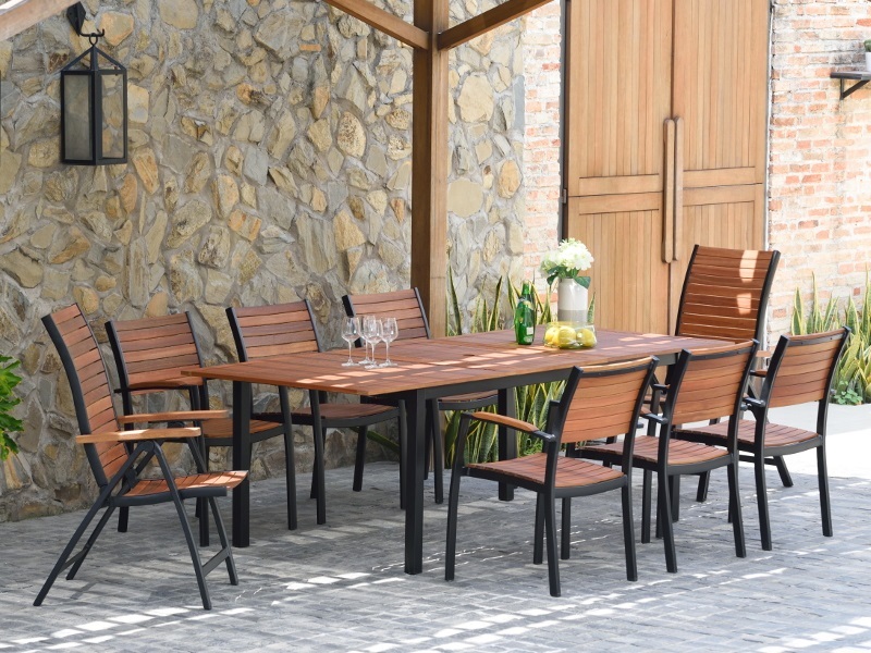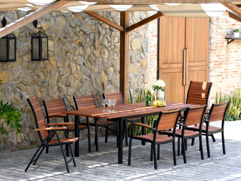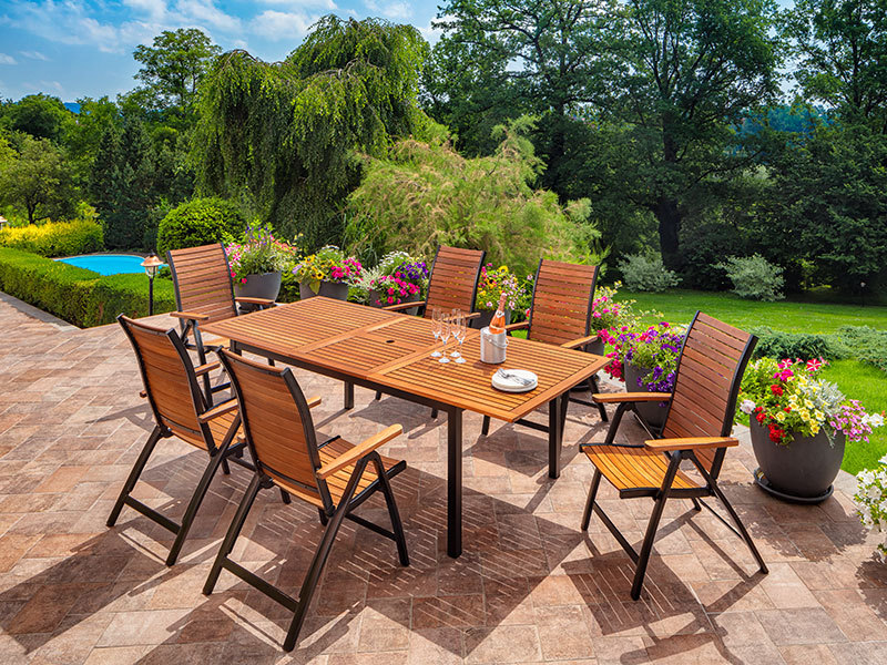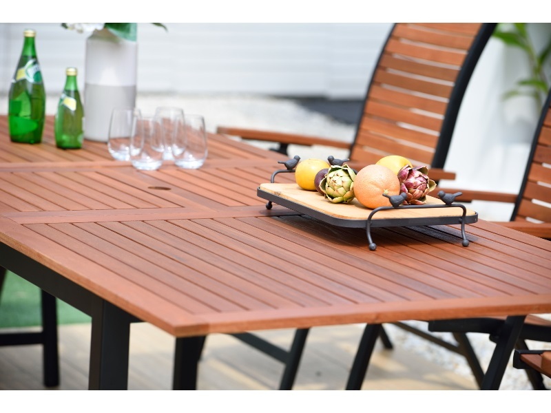 Masyvus sodo stalas Flamingo su sulankstomu stalu elegantiškai ir praktiškai sujungia eukalipto medienos ir aliuminio pagrindo išvaizdą bei savybes. Dėl šio derinio jis lengvai derinamas su beveik bet kokia sodo ar terasos koncepcija. Su juo galite paruošti malonų pasisėdėjimą 6-8 žmonėms.