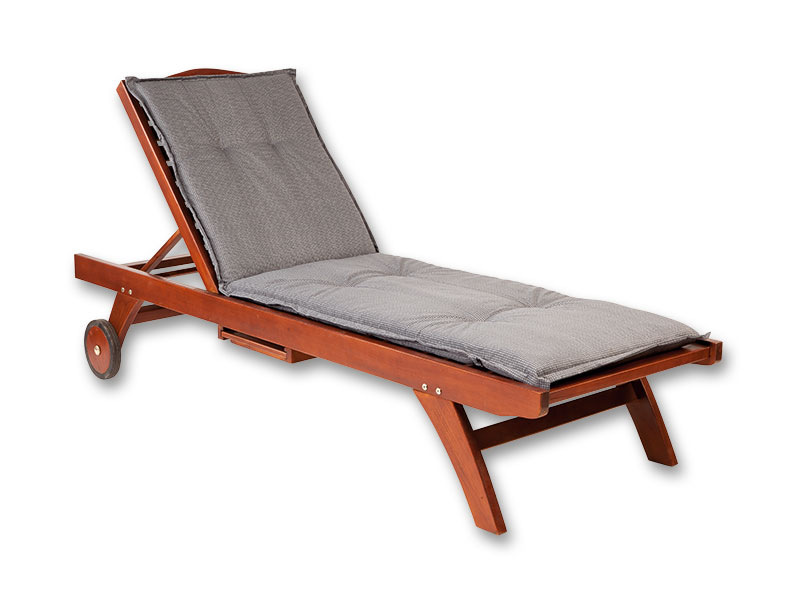 Pilkos, subtilaus rašto šezlongo užvalkalas GRIS pagamintas iš malonaus liesti medvilnės mišinio audinio. Jis tvirtinamas prie gulto diržu ir raišteliais.