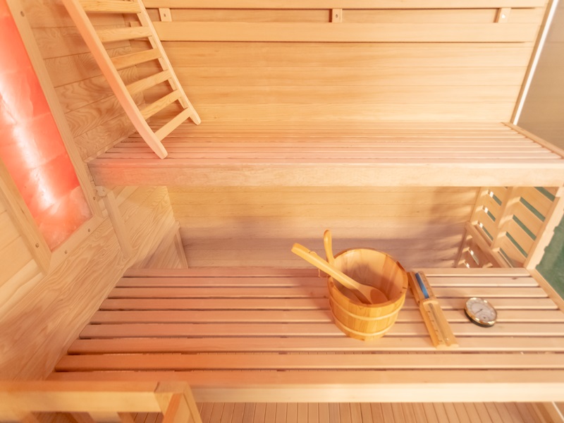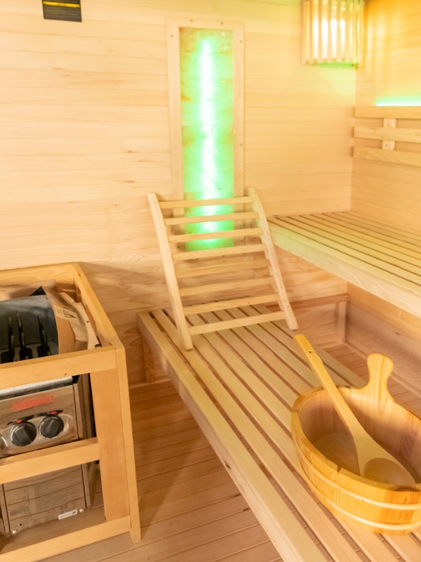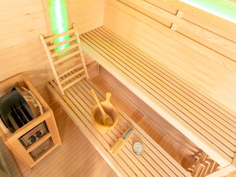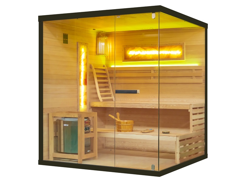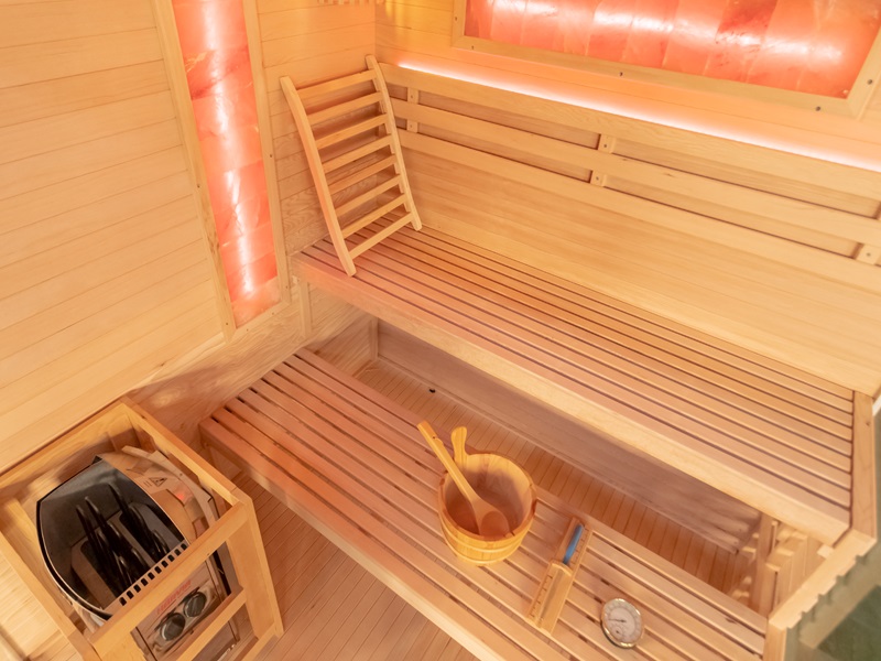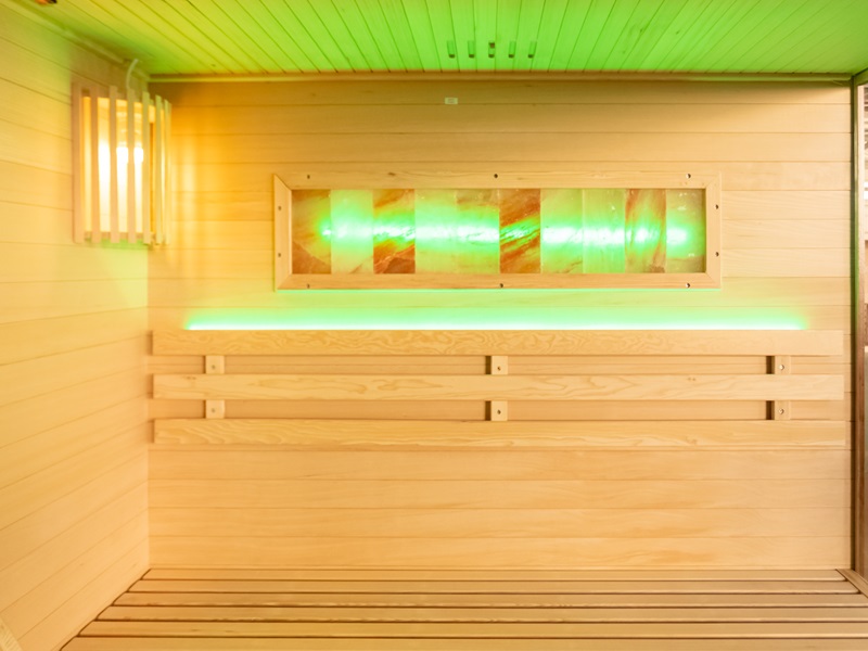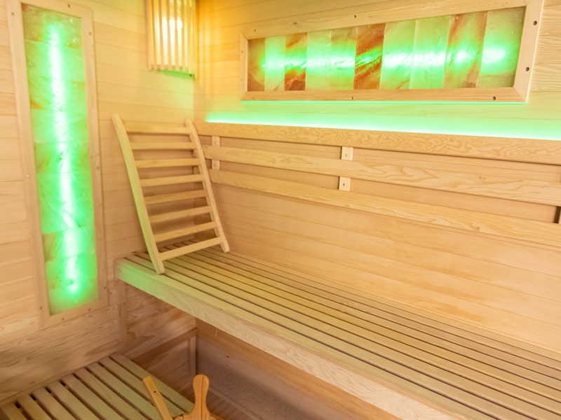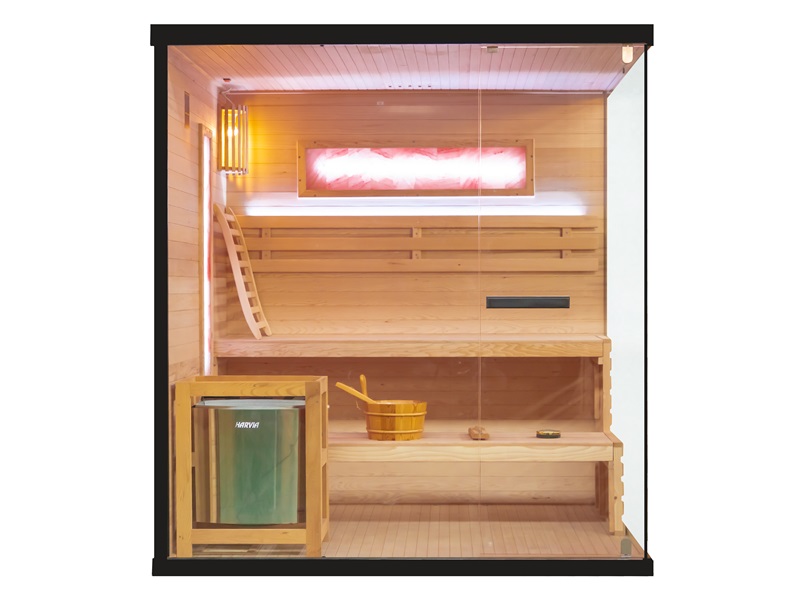 Aukštos kokybės mediena su lygia apdaila ne tik suteikia estetinį patrauklumą, bet ir užtikrina ilgalaikį patvarumą bei atsparumą. Šiltas ir malonus apšvietimas sukuria puikią atmosferą atsipalaidavimui ir poilsiui, kurią dar labiau sustiprina šviesos terapija. Dvi druskos plokštės suteikia įdomų estetinį elementą ir taip pat gali padėti pagerinti jūsų sveikatą (pvz., kvėpavimo sistemą) ir bendrą savijautą.