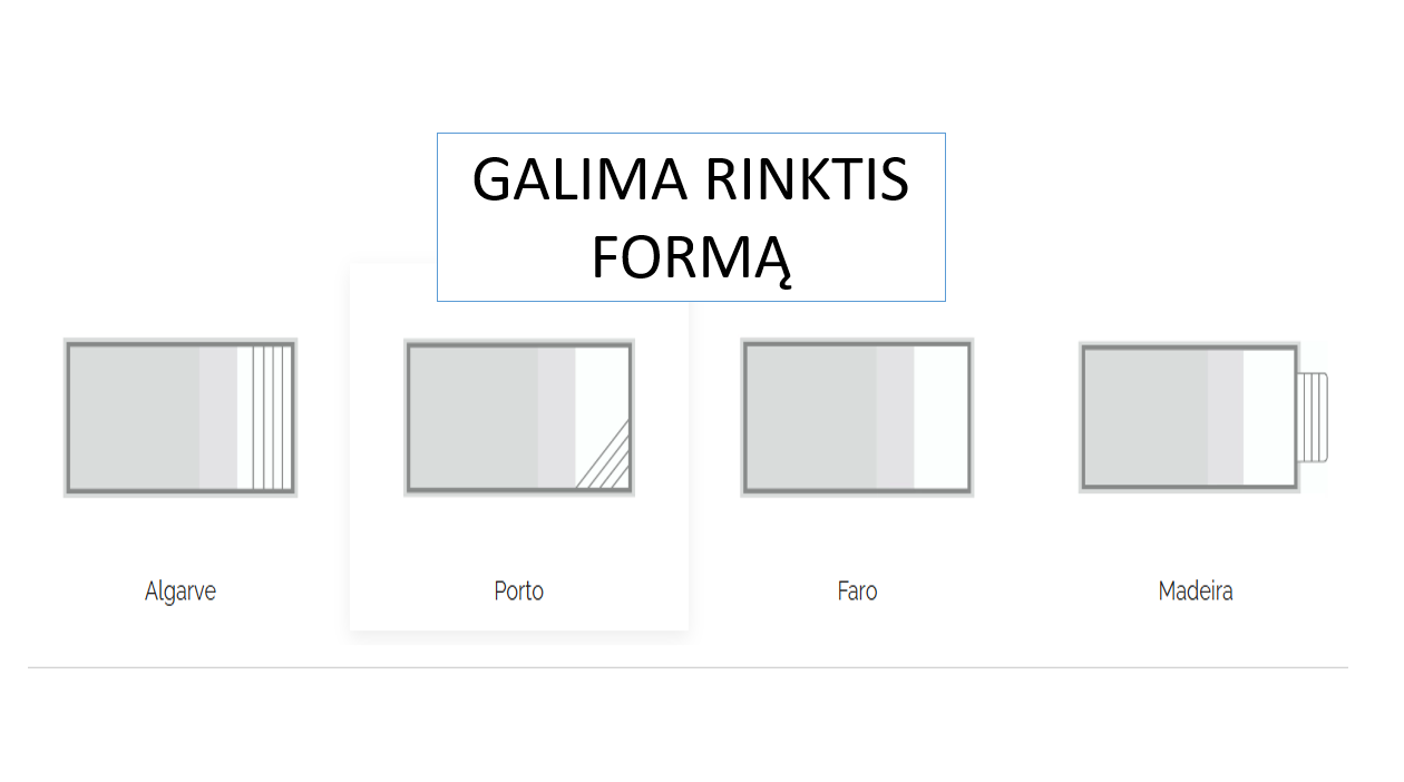 Algarve, Porto, Faro ir Madeira – kiekviena forma pritaikyta skirtingam sklypo išdėstymui ir poreikiams.