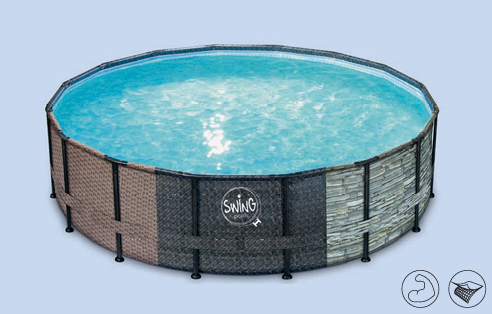 SWING® metalinio karkaso baseinai – ratanas / akmuo