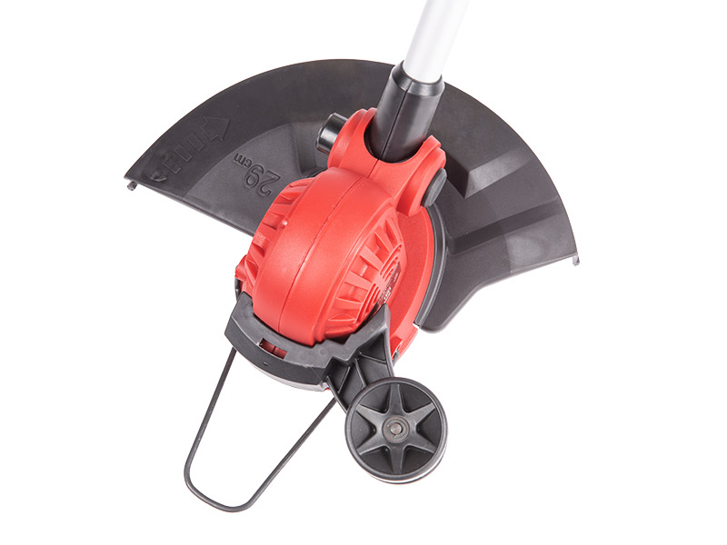 Ji turi aukštesnę nei standartinę elektros variklio galią (550 W), kuri garantuoja puikų darbo našumą. Pjaudami palei gėlynus ar alpinariumus, visi įvertins priekinį sustojimą, skirtą apsaugoti gėles ir dekoratyvinius augalus. Be to, ši styga turi atraminį ratą, skirtą šoniniam pjovimui.